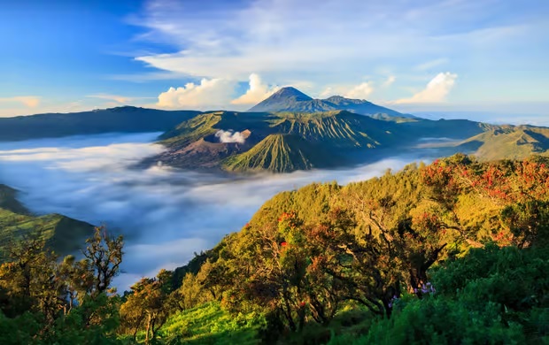 Start early for the legendary Mount Bromo sunrise from the best viewpoint. Explore the Sea of Sand and Bromo Crater before heading to the stunning Tumpak Sewu Waterfall. Overnight stay near Tumpak Sewu.